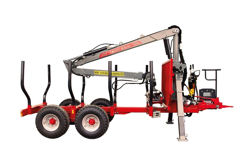 Serienmäßige Ausstattung:- TÜV-Gutachten bis 25 km/h und 4.000 kg Gesamtgewicht (max. bis 8.000 kg)- Hydraulische Bremse auf 2 Rädern- Überdimensionierte Rinner-Qualitätsachsen - Achslast 3.000 kg pro Rad- Stabiele Achsbolzen- Verschiebbare Rungenbänke- Schutzgitter- DIN-Zugöse- Deichsellenkung- Unterlegkeile- Hydraulikleitungen mit metrischen GewindeGesamtgewicht (auf nicht öffentlichen Straßen): 8.000 kgBereifung: 11.5/80-15.3/12 PR-RZentralrohrrahmen: 160 x 160 x 8 mmRungen: 4 Paar, gebogen, drehbarRungenhöhe: 1.200 mmRungendurchmesser: außen/innen/Stärke ca. 78/60/9 mmLastrahmenfläche: 2,2 m²Länge der Ladefläche: 3.850 mmBodenfreiheit am Steuergelenk: 490 mmLänge x Breite (bei Standardbereifung): 5.800 x 2.135 mmBremse: hydraulische 2-Rad-BremseLenkung: hydraulische Lenkung / DeichselLenkwinkel: +/- 40°Eigengewicht mit FK 6100 ecoLine: ca. 2.585 kgBetriebsdruck: max. 180 barFORSTKRAN FK 6100 ecoLine- Kran mit hydraulischer Abstützung, Euro-Forstkran-Steuerung, Zange HZ 10 (1.000 mm Öffnungsweite) und Rotator 3 t - Innenliegende Zylinder bei der hydraulischen Abstützung – Dreipunktanbau - Kran aus hochwertigen Stählen, alle Laschen aus Hardox-Stahl - Zylinderschutz - Kransäule aus hochwertigem Qualitätsstahl (Vollstahl, kein Rohr) - Großer Durchmesser für optimale Stabilität und lange Lebensdauer - Hydraulikleitungen mit metrischen Gewinden - Stabiles Knickgelenk (gute Kraftübertragung)Reichweite max.: 6.100 mmTeleskop: 1.000 mmErforderliche Ölmenge: 35 - 50 lHubleistung bei max. Reichweite und 180 bar (bei angebauter Zange und Rotator): 375 kgArbeitsdruck: 180 barSchwenkradius: 380°Schwenkmoment: 11,5 kNmSchwenkzylinder: 4Rotator: 3 t - endlosZange: HZ 10Eigengewicht mit hydr. Abstützung: 1.065 kgSteuerung: Kreuzhebelsteuerung (Euro-Forstkran)