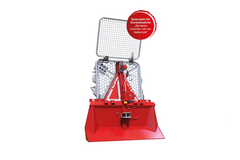 TAIFUN Forstseilwinde EGV45AHK-SG mit hydraulischer Steuerung und SeilausstoßSerienmäßige Ausstattung:60 m Spezial-Forst-Seil 6 F-V 10 mm, rechn. Bruchkraft 12.586 kgHalterung für SappieHalterung für MotorsägeSeileinlaufrolle untenAnhängekupplungTotmannschaltungEndabschalterSicherheitsbandbremseSchutzgitter3 KupplungsbelägeSteuerungskonsoleGS-geprüftCE-Zeichen
